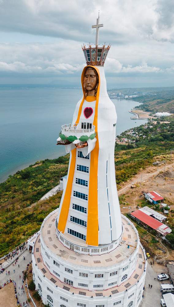 It is the tallest statue of Mary in the world with a height of 98.15 meters or 322 feet measured from the ground up to the tip of the cross on top of her crown.